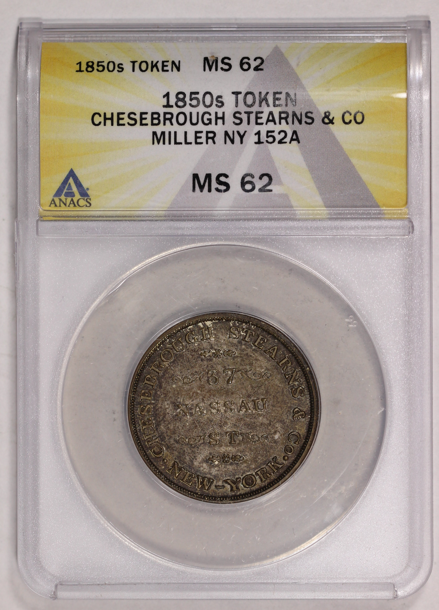 1850s Chesebrough Stearns & Co Merchant Token Miller NY 152a ANACS MS62