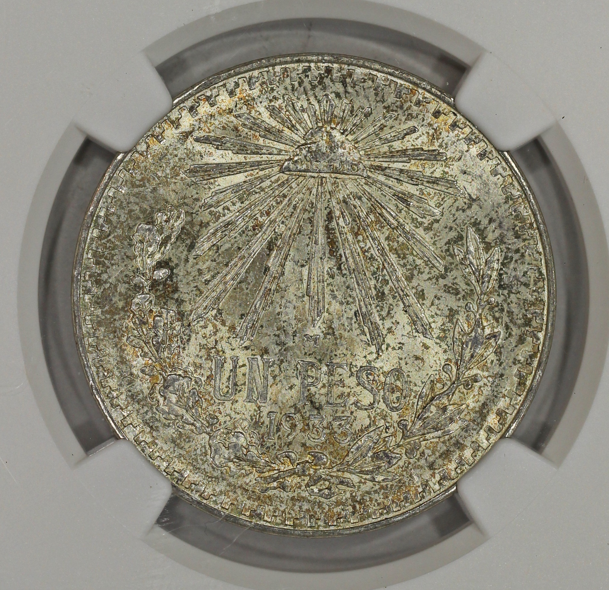 1933 M Mexico Silver Un Peso Coin NGC MS66 Lightly Toned$85.00 1 in stock 1933 M Mexico Silver Un Peso Coin NGC MS66 Lightly Toned quantity Add to cart Continue Shopping Categories: MEXICO, NGC, WORLD COINS Description Additional information Reviews (0) Description 1933 M Mexico Silver Un Peso Coin NGC MS66 Lightly Toned Additional information Weight 4 oz Reviews There are no reviews yet. Only logged in customers who have purchased this product may leave a review. Related products 1904 Cn H Mexico Silver 5 Centavos KM#400 $13.00 1896 Newfoundland Silver 10c Canada Ten Cents KM#3 $19.00 1936 M Mexico 5 Centavos Coin 5c KM#423 $18.00