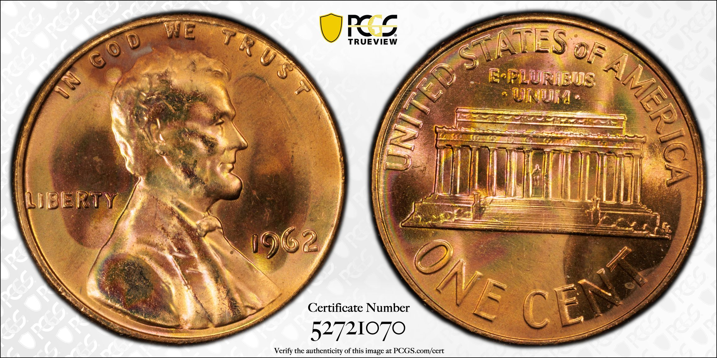 1962 1c Lincoln Memorial Cent PCGS MS65RD Colorful Toning$85.00 1 in stock 1962 1c Lincoln Memorial Cent PCGS MS65RD Colorful Toning quantity Add to cart Continue Shopping Categories: HALF CENTS AND CENTS, PCGS, TONED COINS, U.S. COINS Description Additional information Reviews (0) Description 1962 1c Lincoln Memorial Cent PCGS MS65RD Colorful Toning Additional information Weight 4 oz Reviews There are no reviews yet. Only logged in customers who have purchased this product may leave a review. Related products 1904-O Morgan Silver Dollar PCGS MS65 Colorful Toning $235.00 1960’s Jamaica Half Penny PCGS World Trade Center Ground Zero Recovery WTC $24.00 1952 10c Silver Roosevelt Dime Proof PCGS PR66 Colorful Toning $39.00